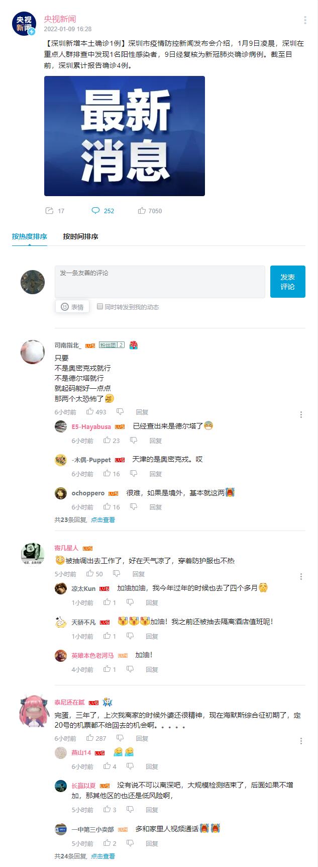 【深圳新增本土确诊1例】深圳市疫情防控新闻发布会介绍,1月9日凌晨,深圳在重点人群排查中发现1名阳性感染者,9日经复核为新冠肺炎确诊病例。截至目前,深圳累计报告确诊4例。