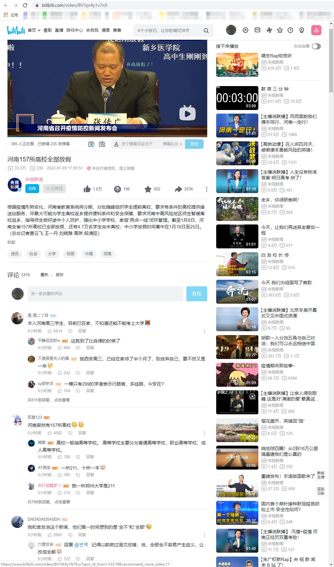 2022年1月9日,新闻记录|天津2例本土确诊感染奥密克戎|深圳新增本土确诊1例|河南157所高校全部放假