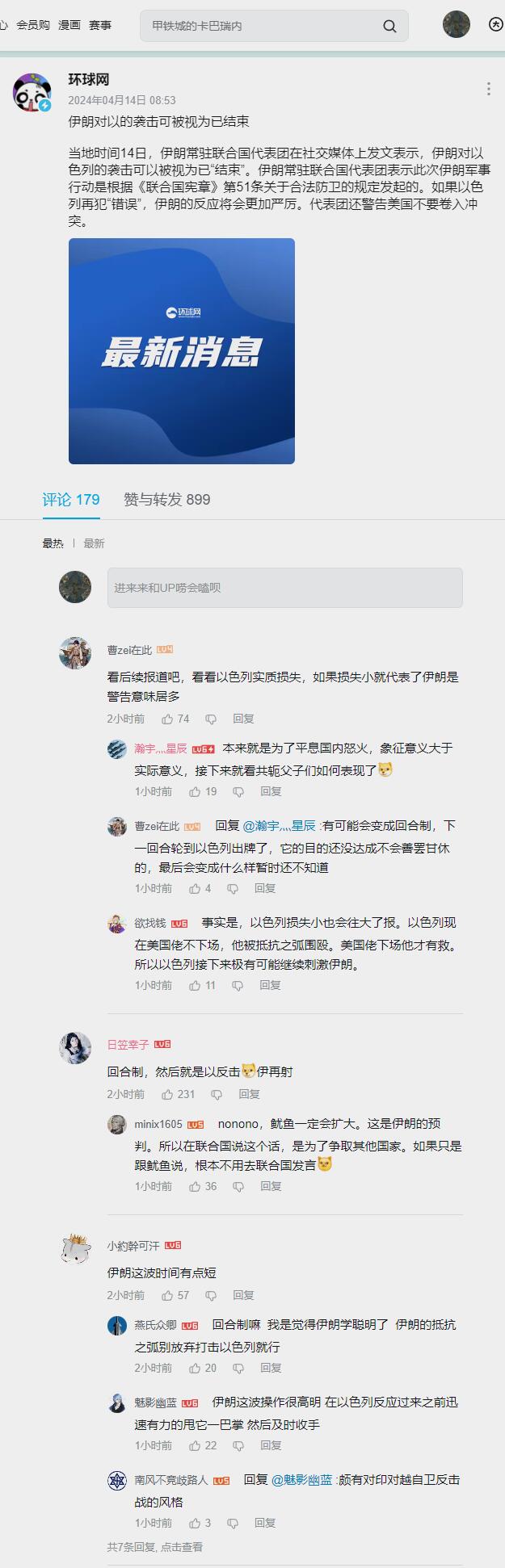 当地时间14日,伊朗常驻联合国代表团在社交媒体上发文表示,伊朗对以色列的袭击可以被视为已“结束”。伊朗常驻联合国代表团表示此次伊朗军事行动是根据《联合国宪章》第51条关于合法防卫的规定发起的。如果以色列再犯“错误”,伊朗的反应将会更加严厉。代表团还警告美国不要卷入冲突。