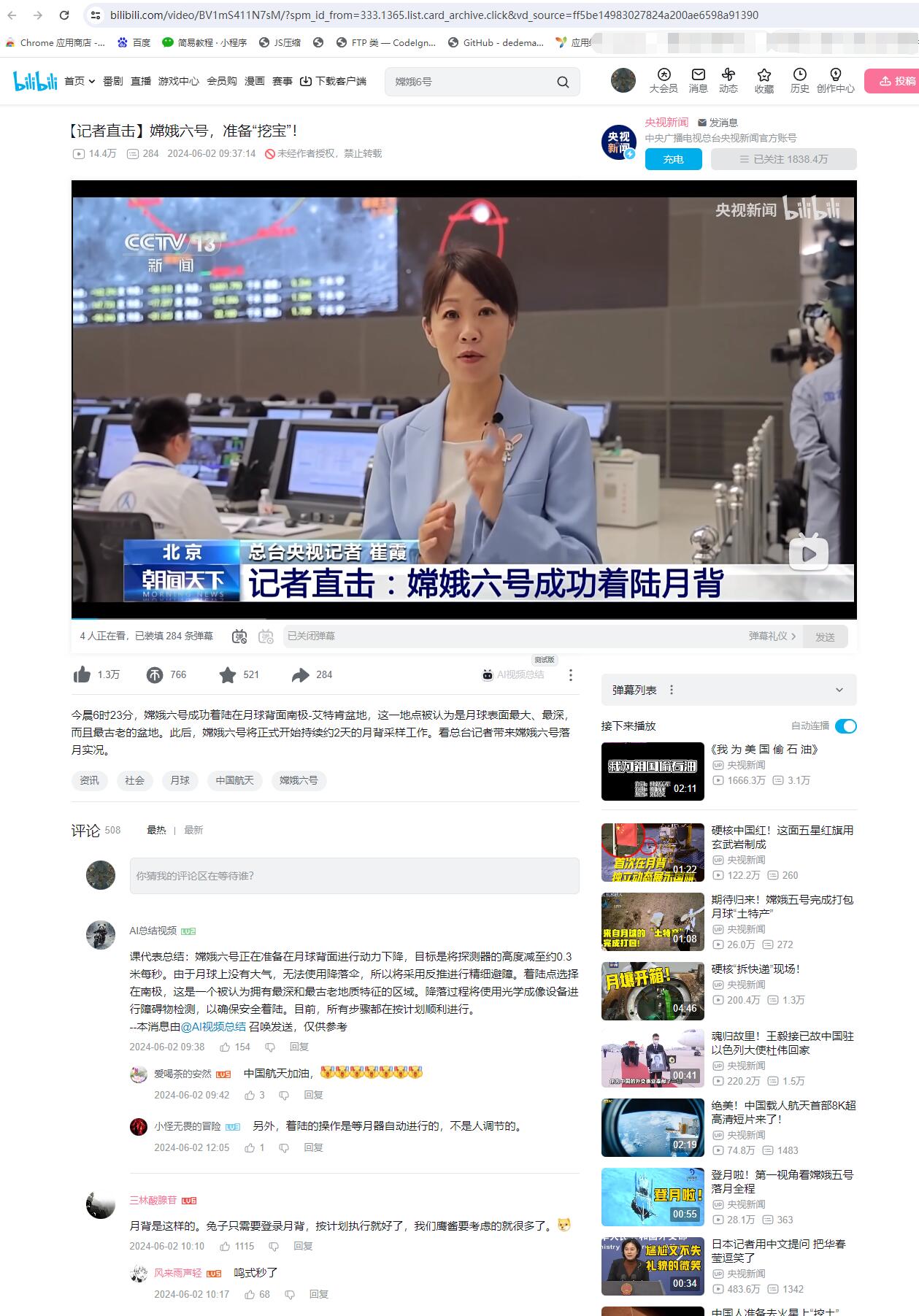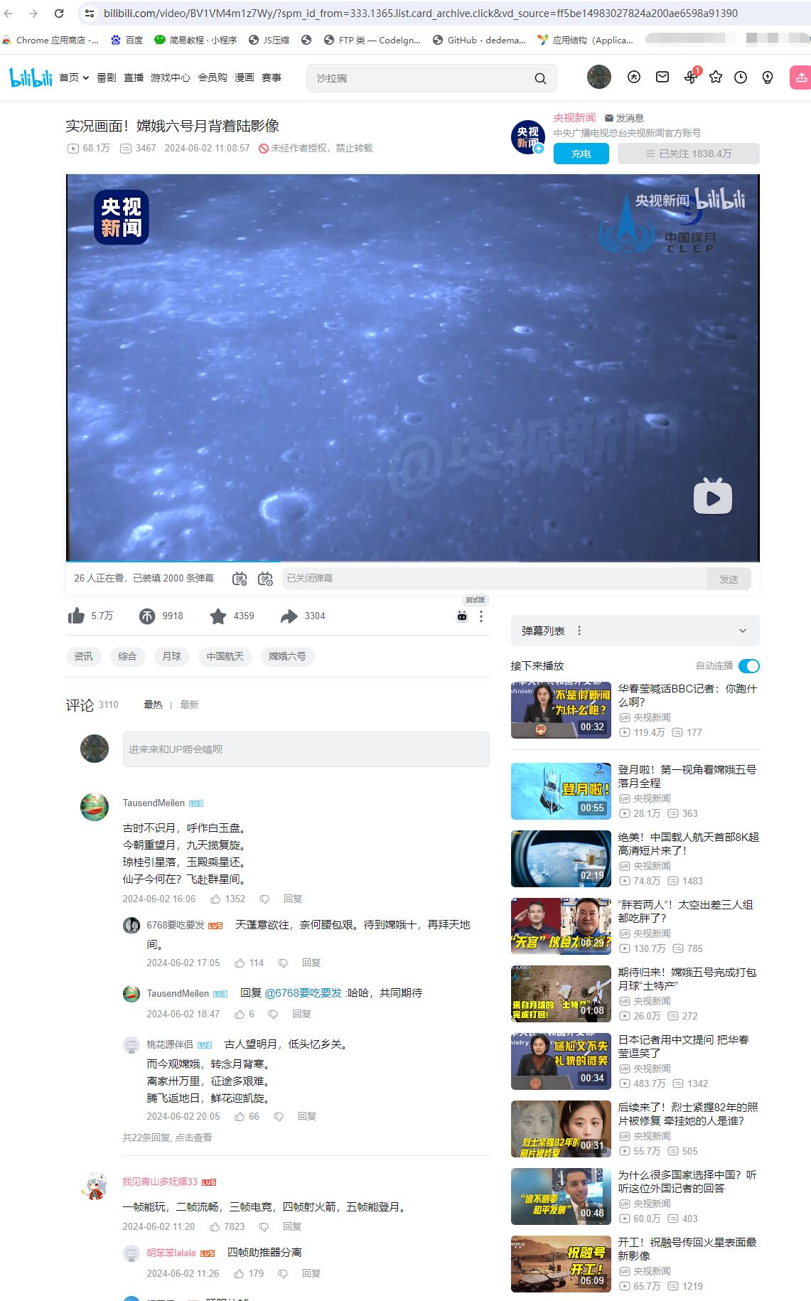 嫦娥六号成功着陆在月球背面|实况画面!嫦娥六号月背着陆影像|这个必须先讲完,这是我们核心利益的核心