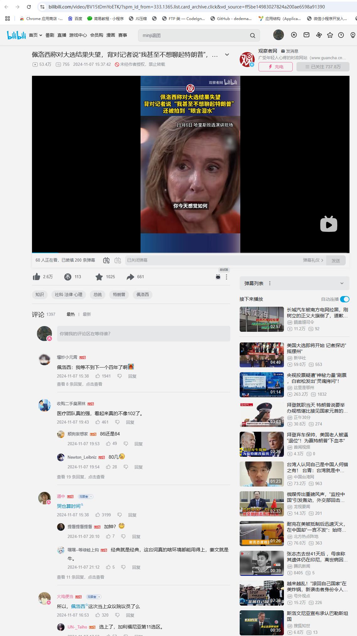 ★★★ 佩洛西称对大选结果失望,背对记者说“我甚至不想聊起特朗普”,还被拍到“眼含泪水”
