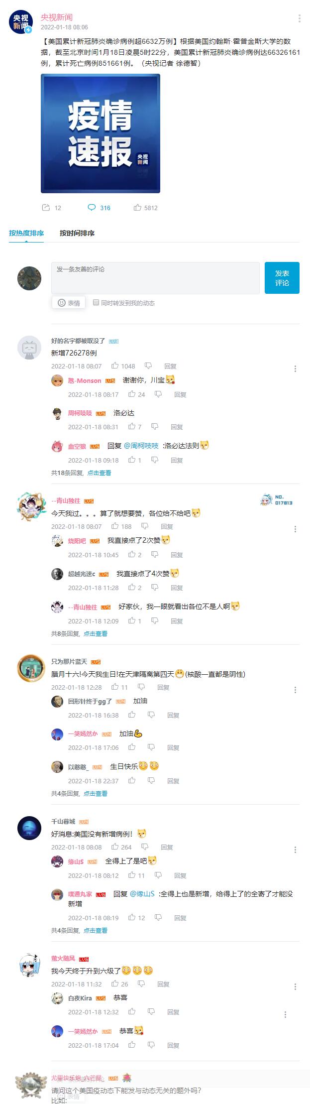 【美国累计新冠肺炎确诊病例超6632万例】根据美国约翰斯·霍普金斯大学的数据,截至北京时间1月18日凌晨5时22分,美国累计新冠肺炎确诊病例达66326161例,累计死亡病例851661例。(央视记者 徐德智)