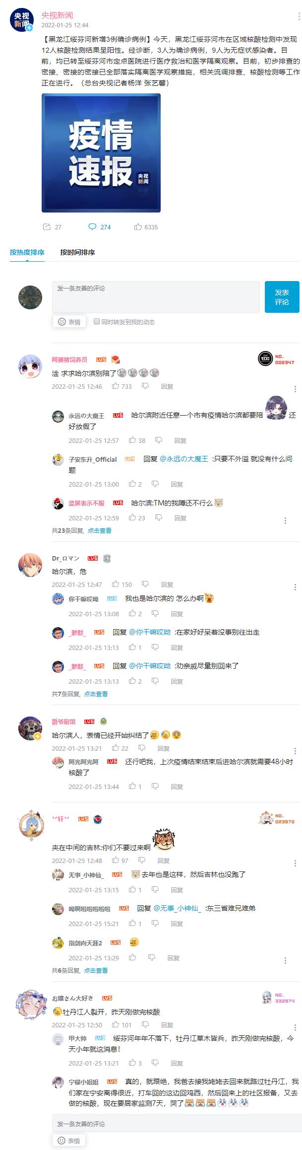 【黑龙江绥芬河新增3例确诊病例】今天,黑龙江绥芬河市在区域核酸检测中发现12人核酸检测结果呈阳性。经诊断,3人为确诊病例,9人为无症状感染者。目前,均已转至绥芬河市定点医院进行医疗救治和医学隔离观察。目前,初步排查的密接、密接的密接已全部落实隔离医学观察措施,相关流调排查、核酸检测等工作正在进行。(总台央视记者杨洋 张艺馨)