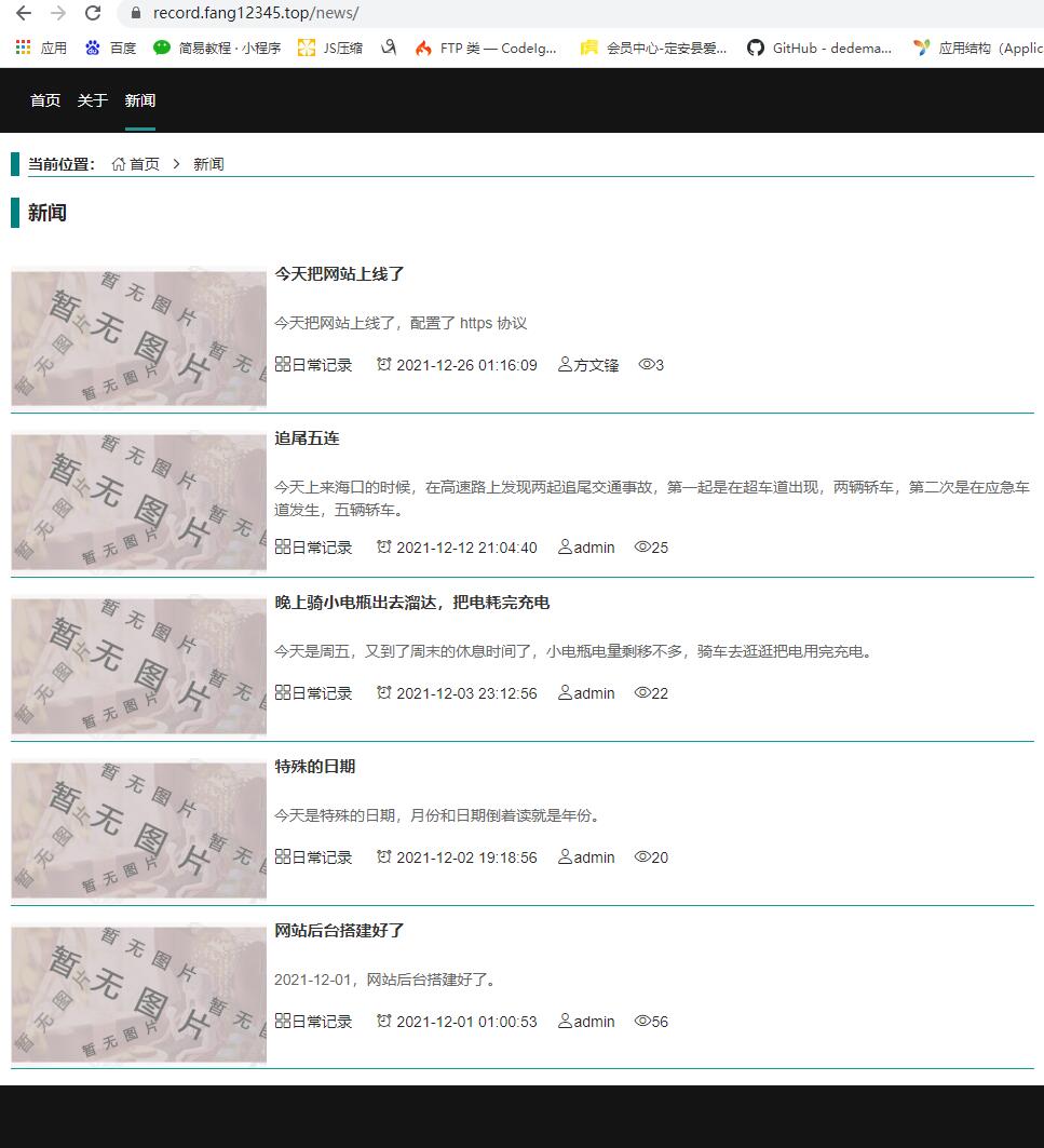 今天把网站上线了,当前时间为 2021-12-26 01:18:19 。基本功能弄好了,后续看情况再继续添加和优化功能。