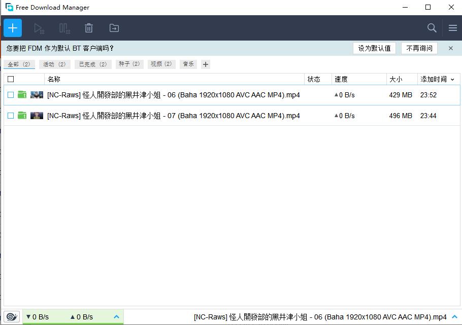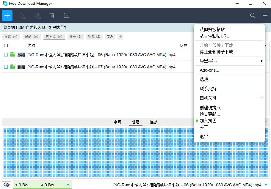 支持下载类型:支持HTTP、FTP、BitTorrent、磁力链接。