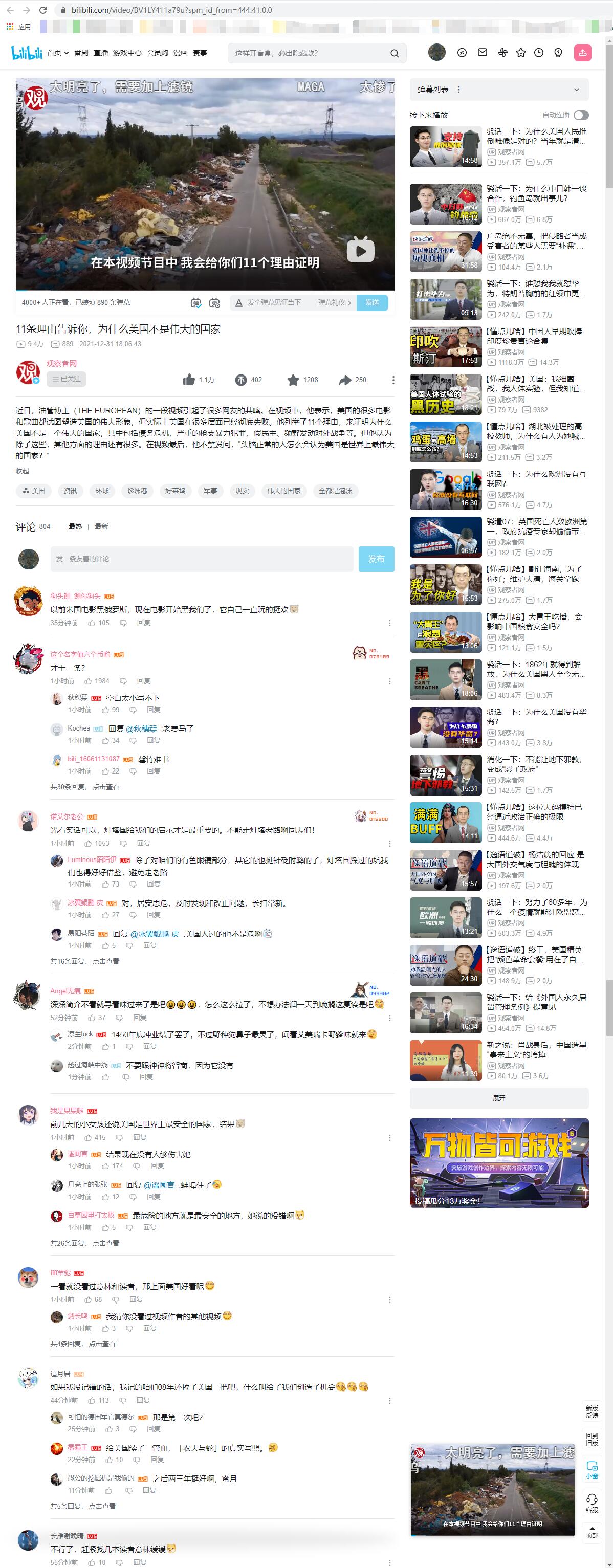 近日,油管博主(THE EUROPEAN)的一段视频引起了很多网友的共鸣。在视频中,他表示,美国的很多电影和歌曲都试图塑造美国的伟大形象,但实际上美国在很多层面已经彻底失败。他列举了11个理由,来证明为什么美国不是一个伟大的国家,其中包括债务危机、严重的枪支暴力犯罪、假民主、频繁发动对外战争等。但他认为除了这些,其他方面的理由还有很多。在视频最后,他不禁发问,“头脑正常的人怎么会认为美国是世界上最伟大的国家?”