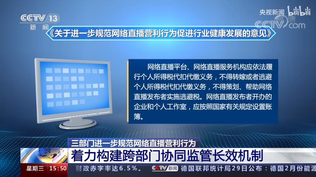 ★★★ 三部门:主播禁止自我打赏 平台每半年报送直播营利情况