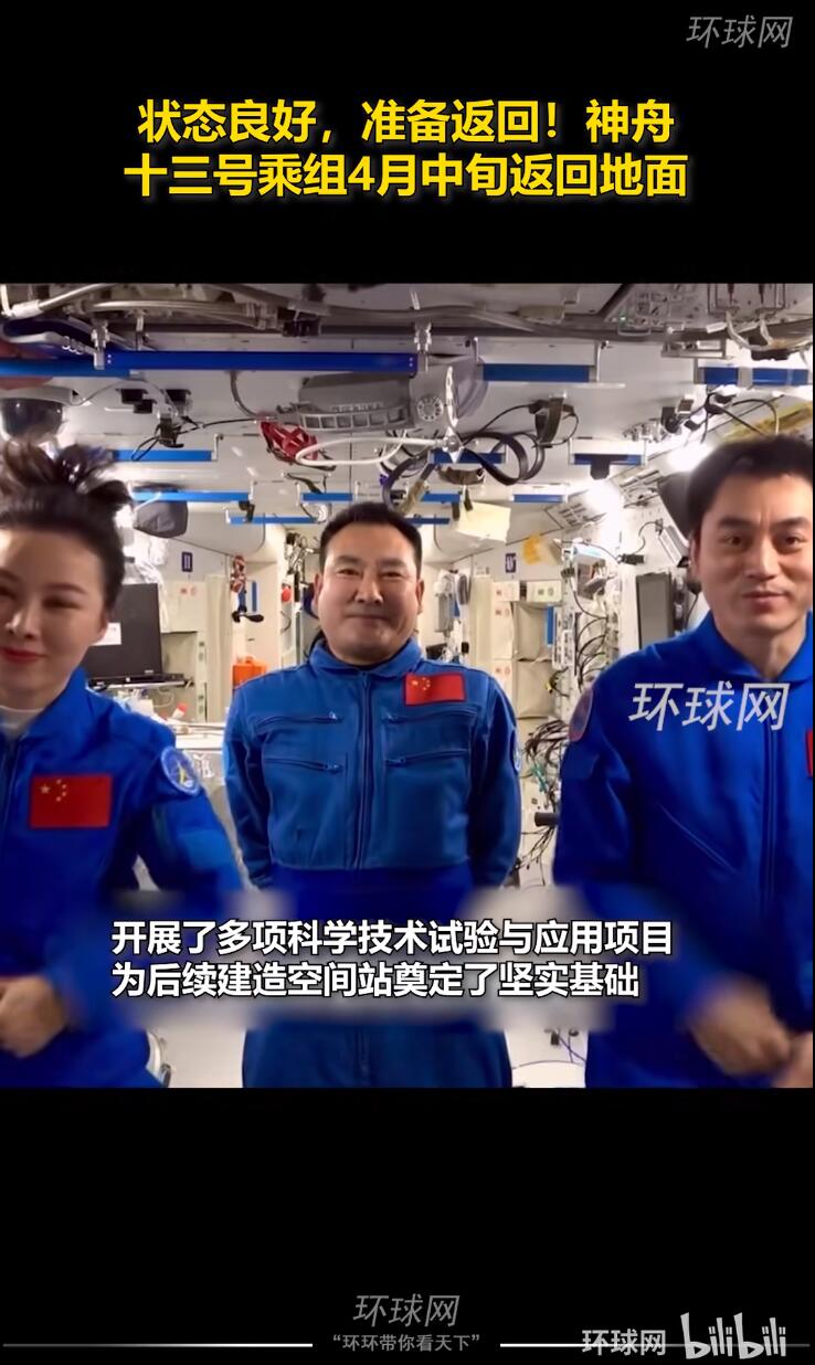 ★★★ 状态良好,准备返回!神舟十三号乘组4月中旬返回地面