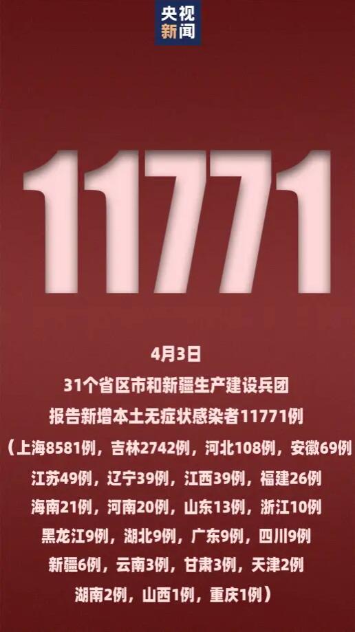 ★★★ 4月3日新增本土确诊1366例 新增本土无症状11771例