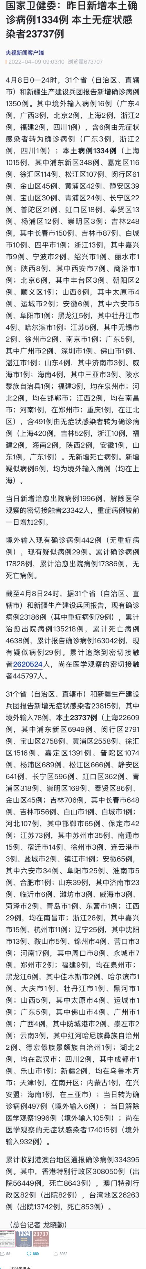 ★★★ 国家卫健委:昨日新增本土确诊病例1334例 本土无症状感染者23737例
