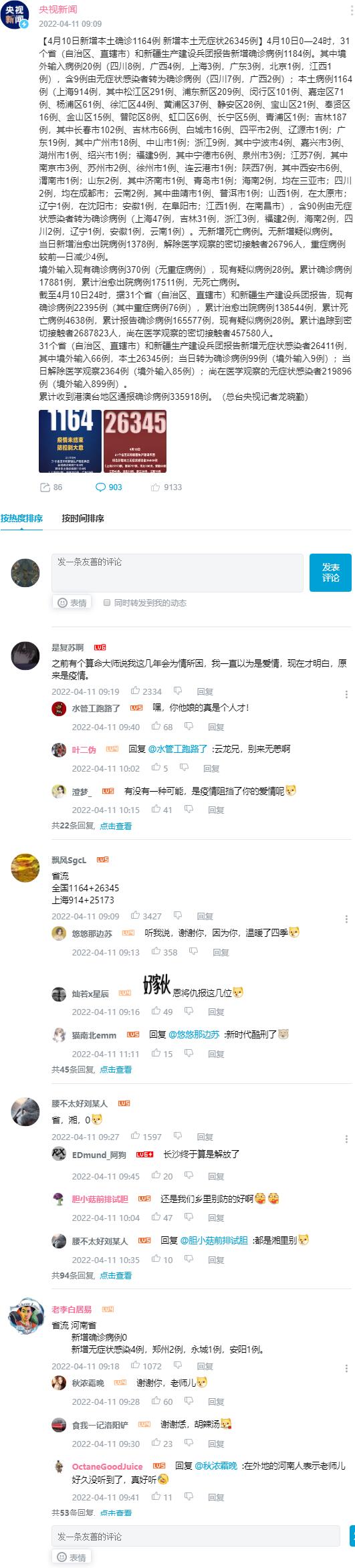 ★★★ 4月10日新增本土确诊1164例 新增本土无症状26345例