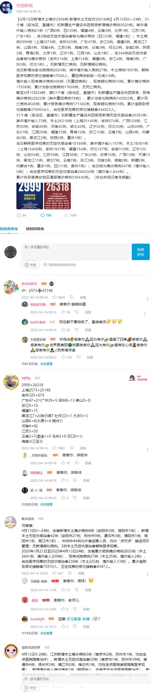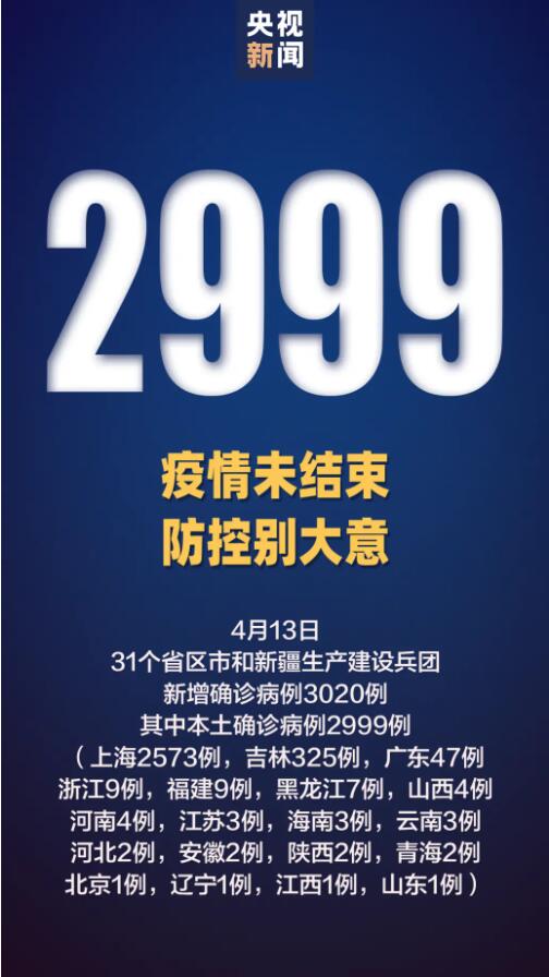 ★★★ 4月13日新增本土确诊2999例 新增本土无症状26318例