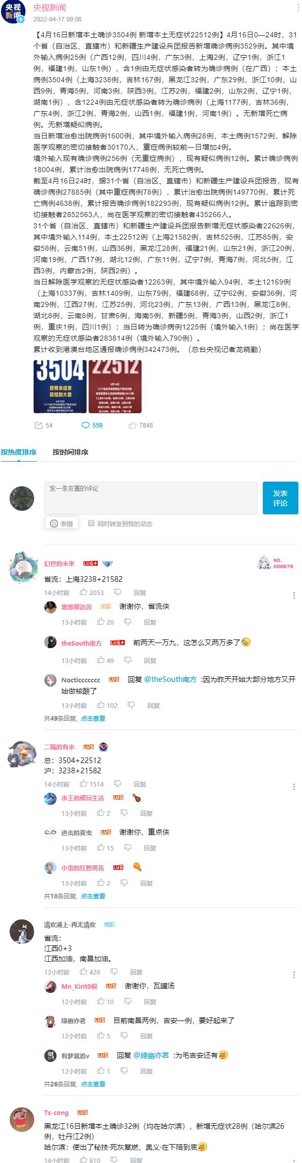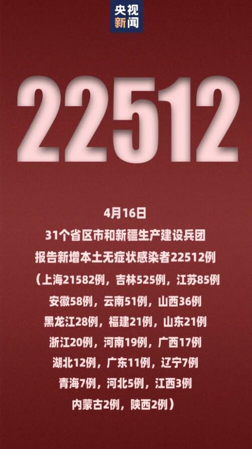 ★★★ 4月16日新增本土确诊3504例 新增本土无症状22512例