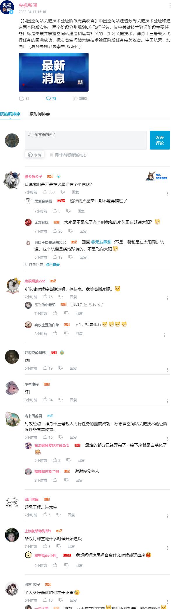 【我国空间站关键技术验证阶段完美收官】中国空间站建造分为关键技术验证和建造两个阶段实施,两个阶段分别规划6次飞行任务,其中关键技术验证阶段主要任务目标是突破并掌握空间站建造和运营相关的一系列关键技术。神舟十三号载人飞行任务的圆满成功,标志着空间站关键技术验证阶段任务完美收官。中国航天,加油!(总台央视记者李宁 都昕竹)