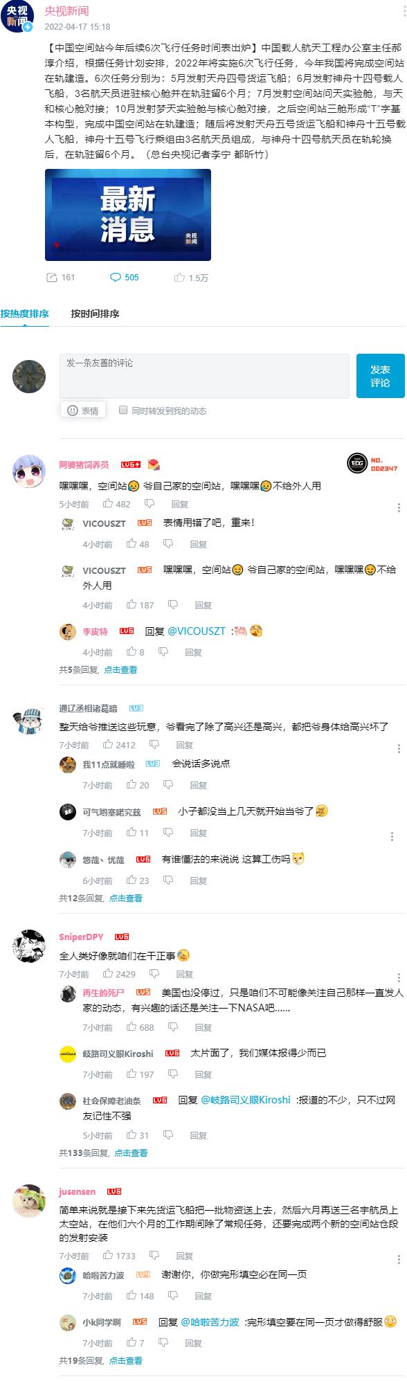 ★★★ 中国空间站今年后续6次飞行任务时间表出炉