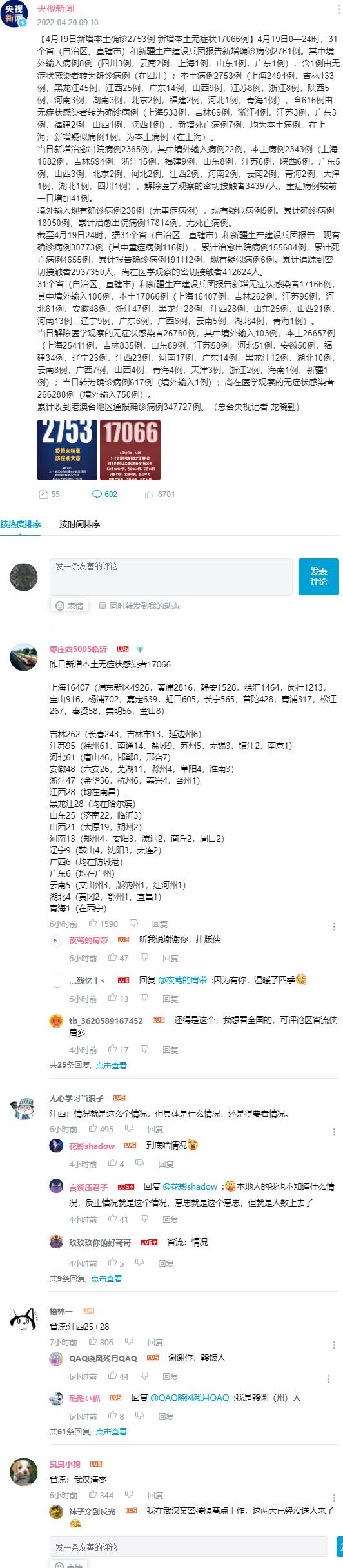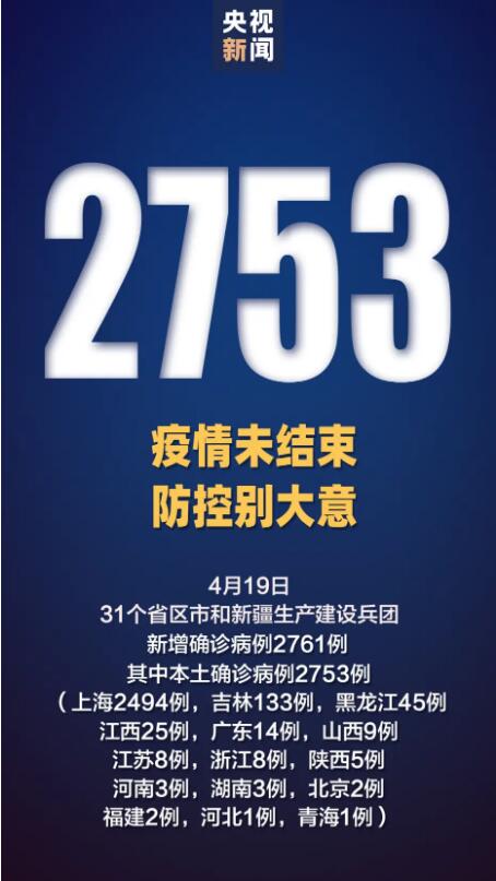 ★★★ 4月19日新增本土确诊2753例 新增本土无症状17066例