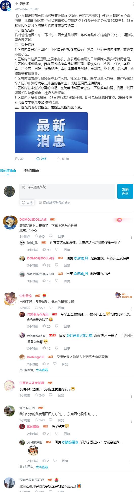★★★ 北京朝阳区部分区域提升管控措施 区域内居民足不出区