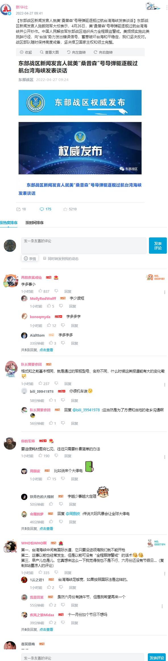 ★★★ 东部战区新闻发言人就美“桑普森”号导弹驱逐舰过航台湾海峡发表谈话