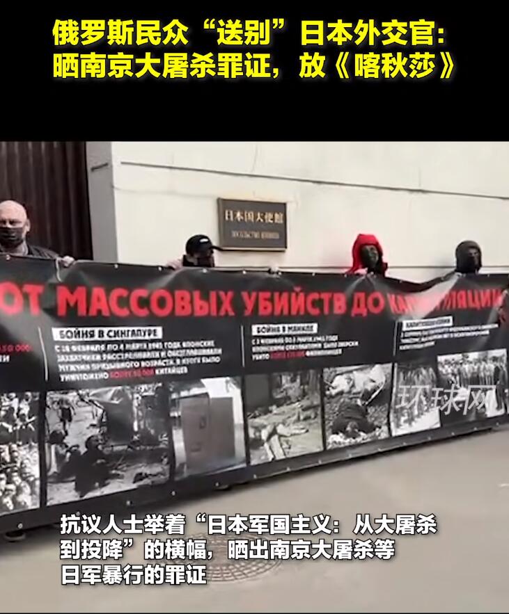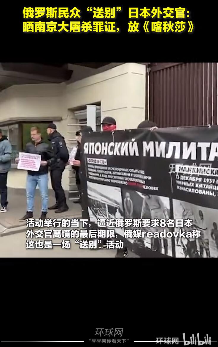 ★★★ 俄罗斯民众“送别”日本外交官:拉南京大屠杀罪证横幅,放《喀秋莎》