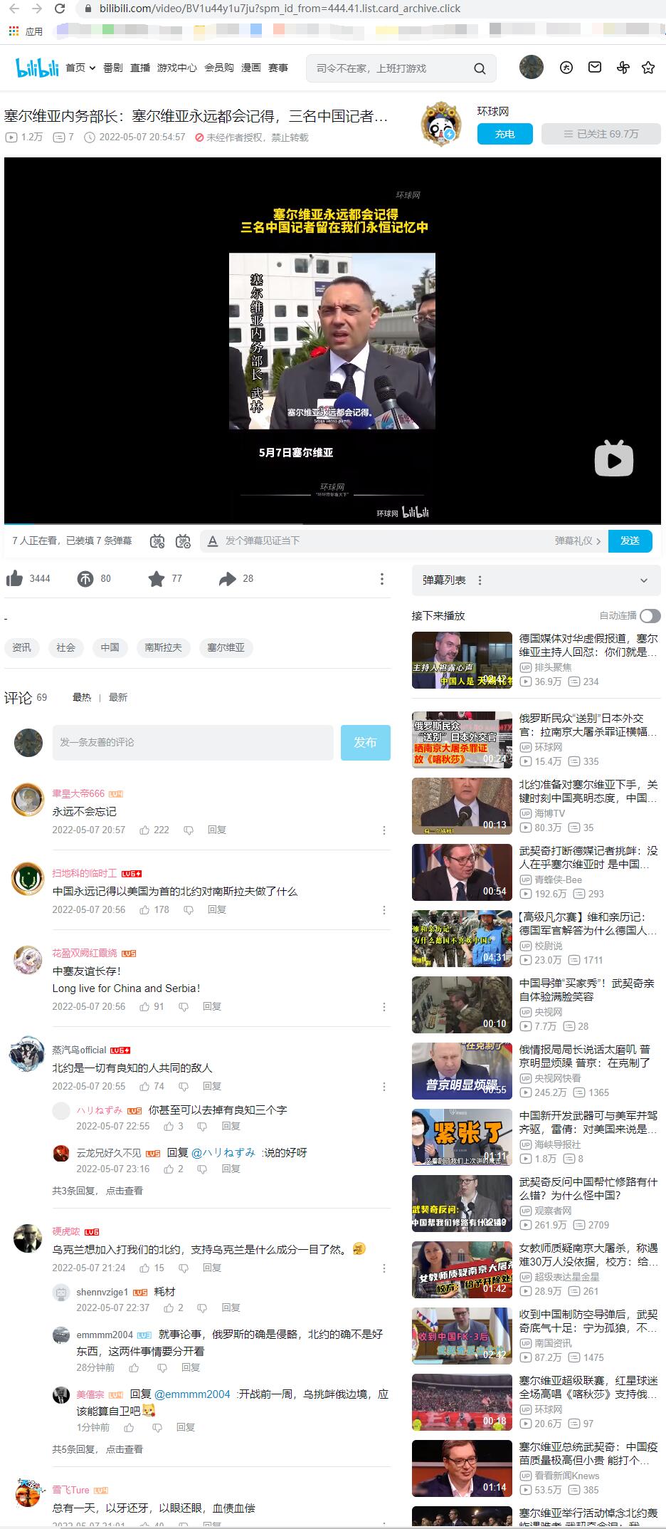 ★★★ 塞尔维亚内务部长:塞尔维亚永远都会记得,三名中国记者留在我们永恒记忆中!