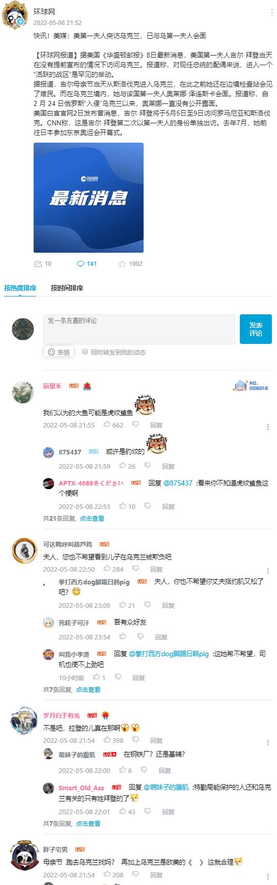 【环球网报道】据美国《华盛顿邮报》8日最新消息,美国第一夫人吉尔·拜登当天在没有提前宣布的情况下访问乌克兰。报道称,对现任总统的配偶来说,进入一个“活跃的战区”是罕见的举动。