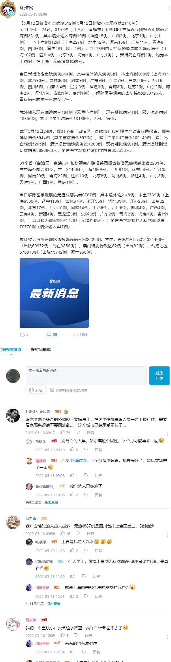 ★★★ 5月12日新增本土确诊312例 5月12日新增本土无症状2140例