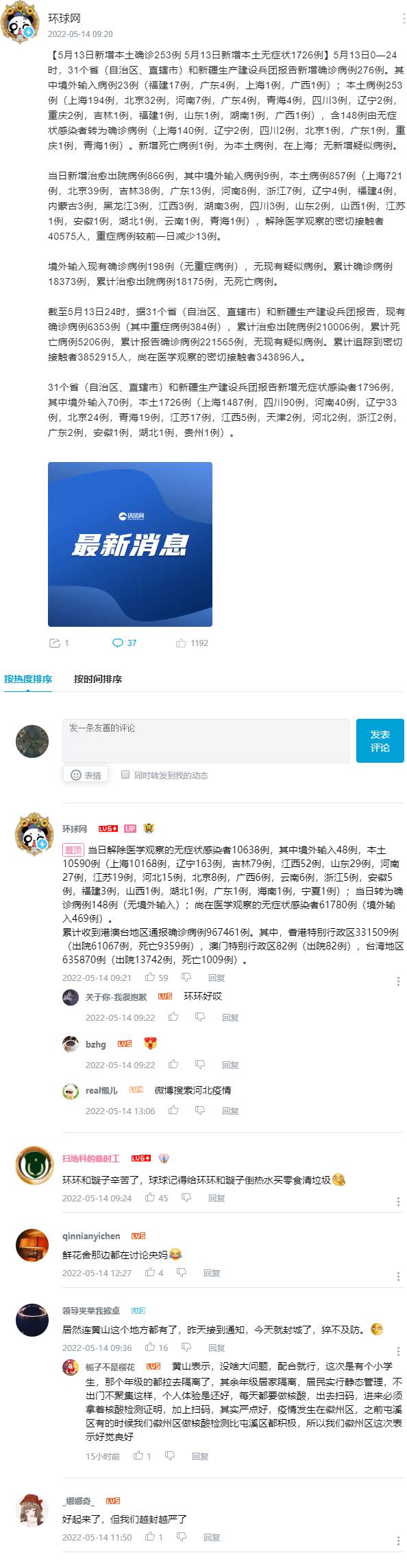 ★★★ 5月13日新增本土确诊253例 5月13日新增本土无症状1726例