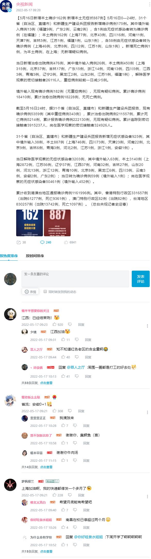 ★★★ 5月16日新增本土确诊162例 新增本土无症状887例