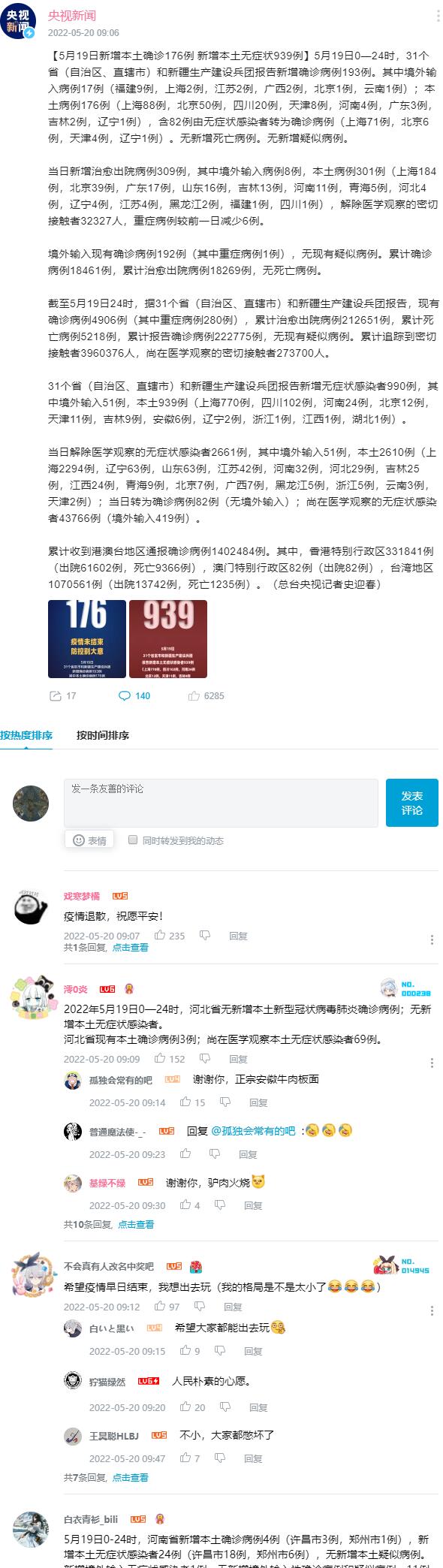 ★★★ 5月19日新增本土确诊176例 新增本土无症状939例