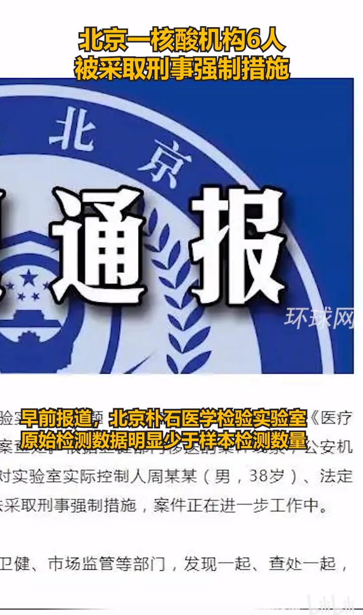 ★★★ 北京一核酸机构6人被采取刑事强制措施