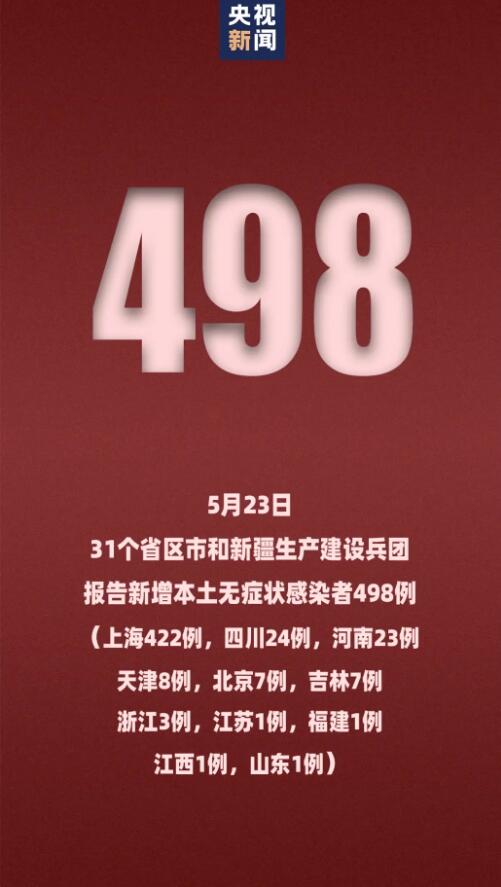 31个省(自治区、直辖市)和新疆生产建设兵团报告新增无症状感染者532例,其中境外输入34例,本土498例(上海422例,四川24例,河南23例,天津8例,北京7例,吉林7例,浙江3例,江苏1例,福建1例,江西1例,山东1例)。