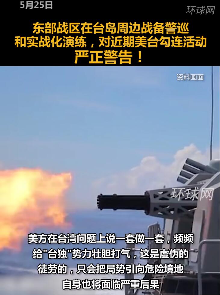 ★★★ 东部战区在台岛周边战备警巡和实战化演练。这是对近期美台勾连活动的严正警告