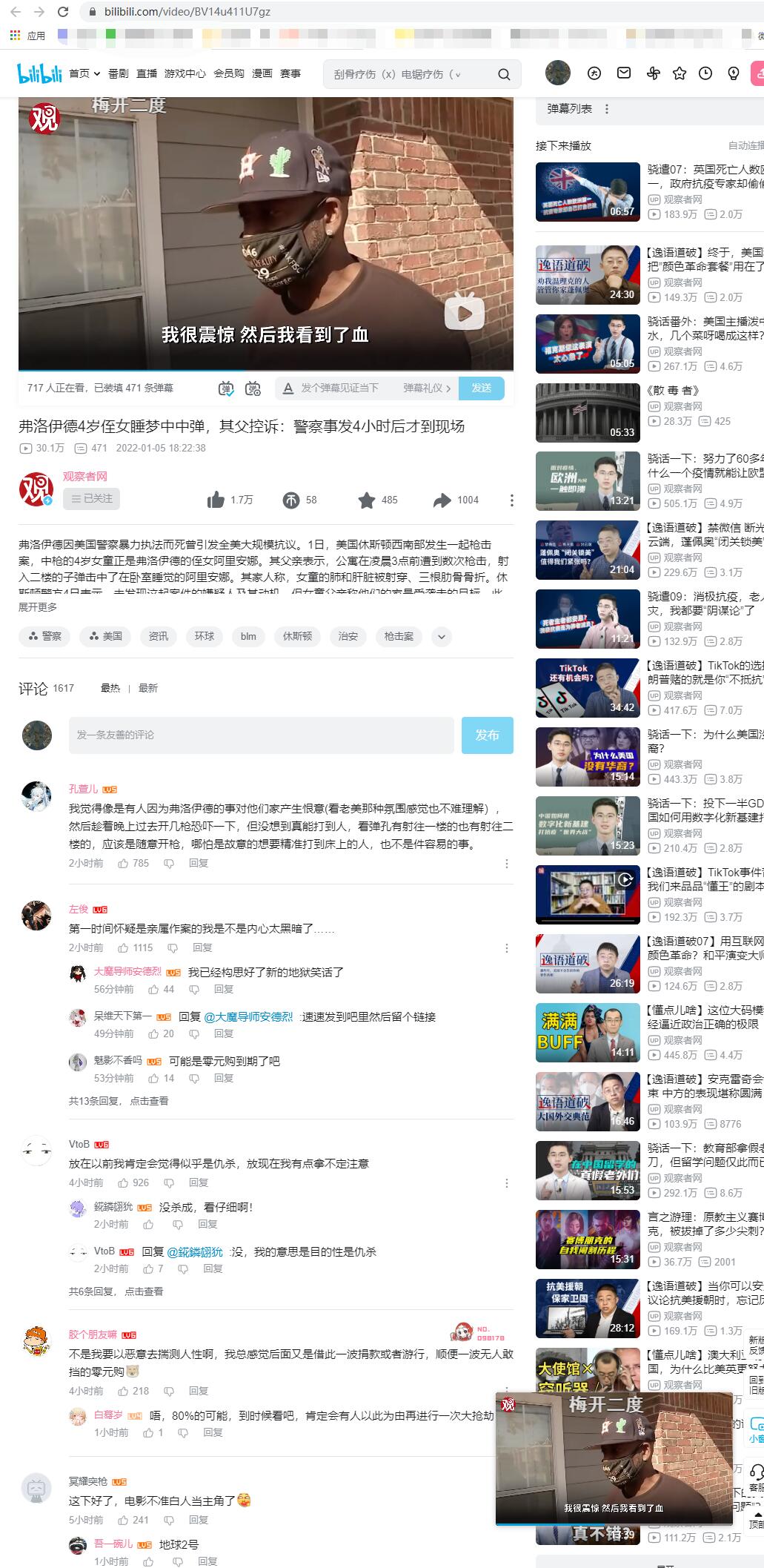 弗洛伊德因美国警察暴力执法而死曾引发全美大规模抗议。1日,美国休斯顿西南部发生一起枪击案,中枪的4岁女童正是弗洛伊德的侄女阿里安娜。其父亲表示,公寓在凌晨3点前遭到数次枪击,射入二楼的子弹击中了在卧室睡觉的阿里安娜。其家人称,女童的肺和肝脏被射穿、三根肋骨骨折。休斯顿警方4日表示,未发现这起案件的嫌疑人及其动机。但女童父亲称他们的家是受袭击的目标,此外,警察直到早上7点才到达现场,比事发晚了4个多小时。