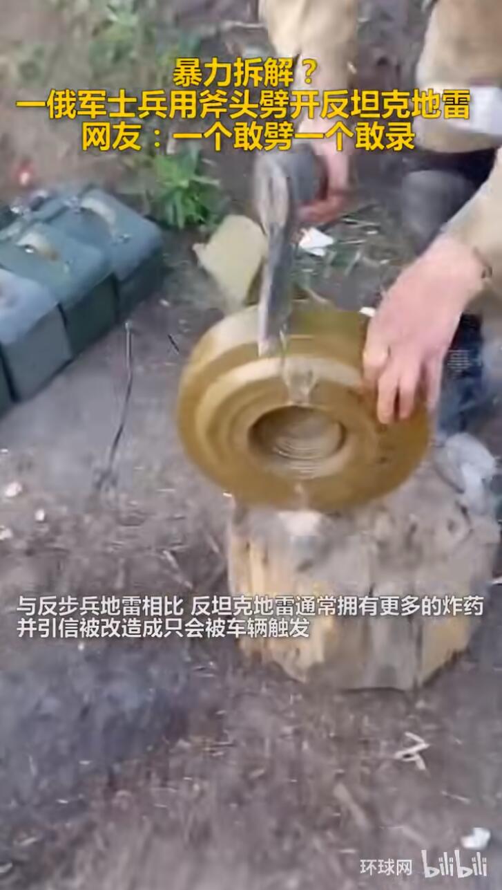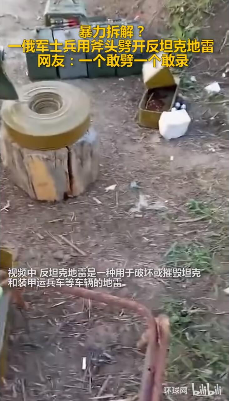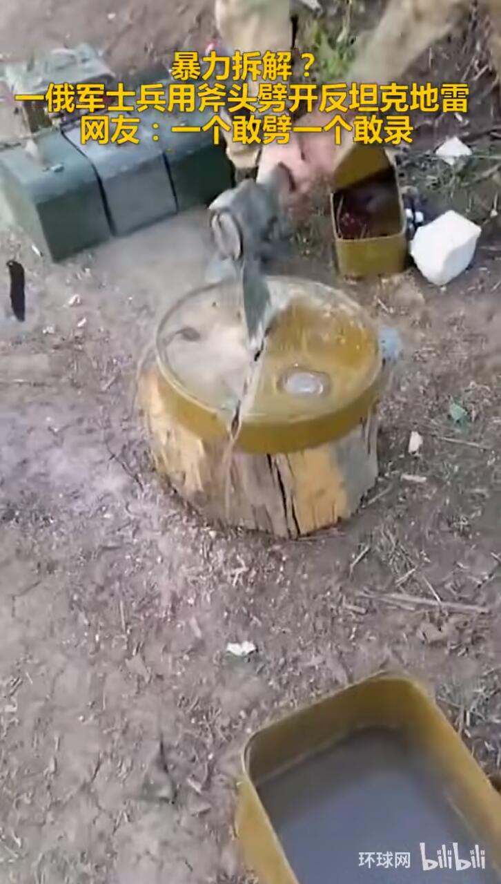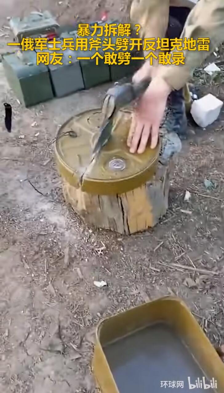 ★★★ 一俄军士兵用斧头劈开反坦克地雷 网友:一个敢劈一个敢录