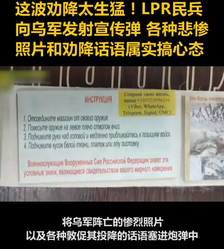 ★★★ 卢甘斯克民兵向乌军发射宣传弹,各种悲惨照片和劝降话语属实搞心态
