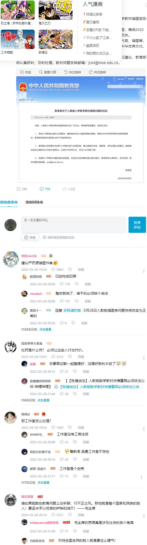 二、教育部立即部署对全国中小学教材进行全面排查,重点是教材内容、插图等,发现问题立即整改,确保教材坚持正确政治方向和价值导向,弘扬中华优秀文化,符合大众审美习惯。