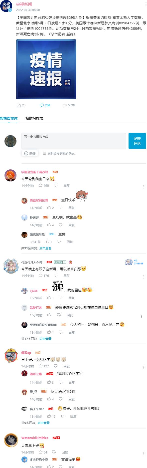 【美国累计新冠肺炎确诊病例超8398万例】根据美国约翰斯·霍普金斯大学数据,截至北京时间5月30日凌晨5时20分,美国累计确诊新冠肺炎病例83984722例,累计死亡病例1004733例。两项数据与24小时前数据相比,新增确诊病例4366例,新增死亡病例7例。(总台记者 赵淼)