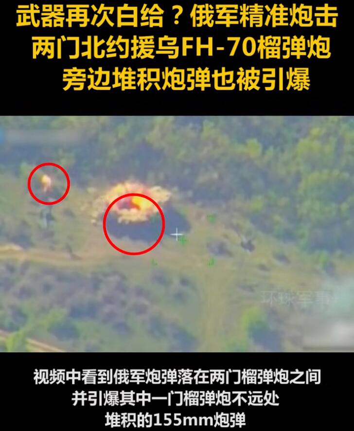 ★★★ 俄军精准炮击两门北约援乌FH-70榴弹炮,旁边堆积炮弹也被引爆