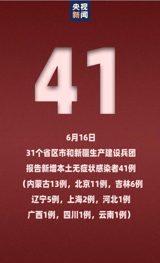 31个省(自治区、直辖市)和新疆生产建设兵团报告新增无症状感染者103例,其中境外输入62例,本土41例(内蒙古13例,北京11例,吉林6例,辽宁5例,上海2例,河北1例,广西1例,四川1例,云南1例)。
