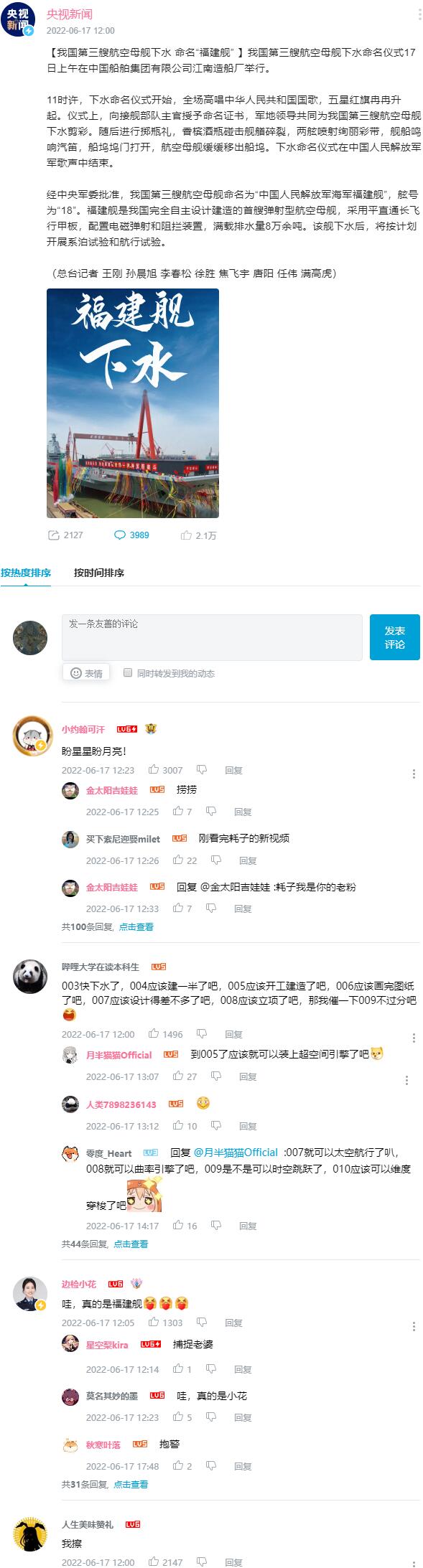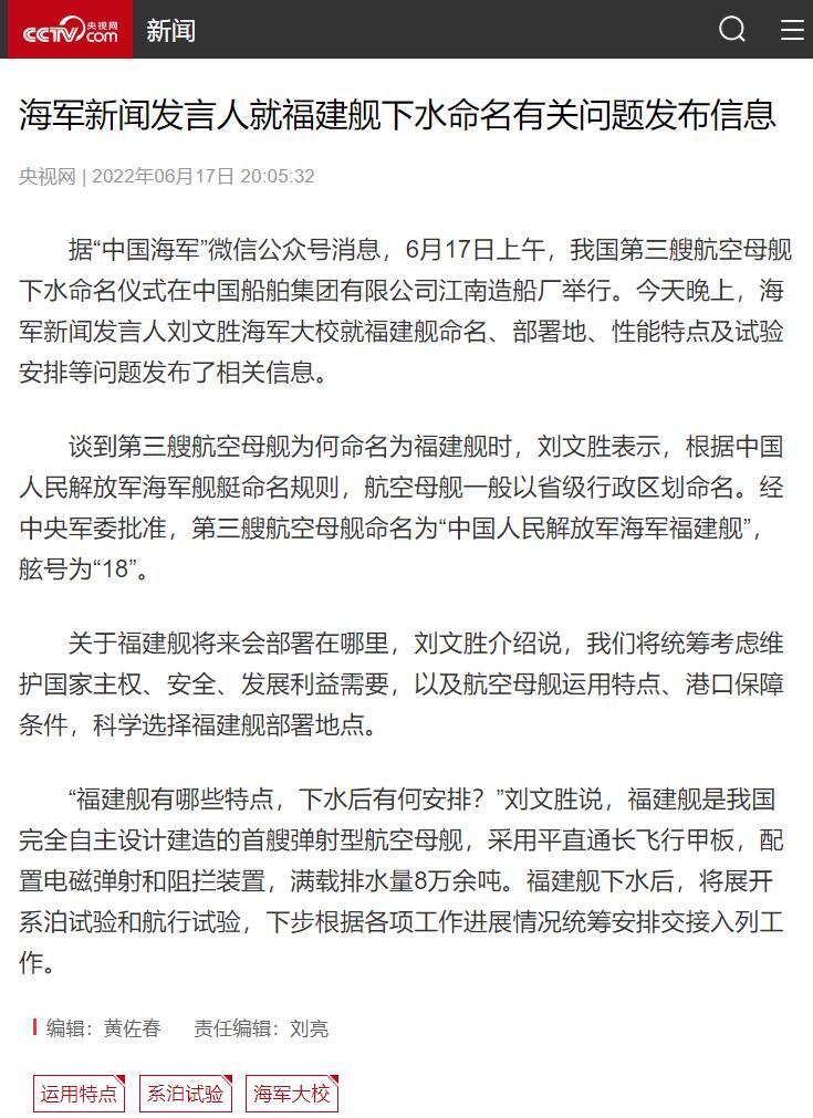 ★★★ 海军新闻发言人就福建舰下水命名有关问题发布信息