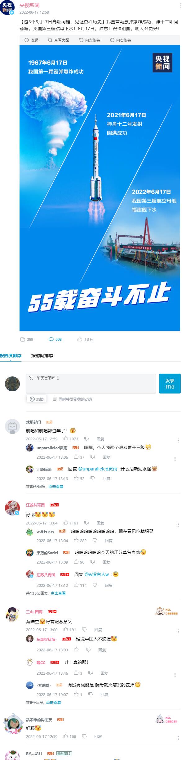 【这3个6月17日高燃同框,见证奋斗历史】我国首颗氢弹爆炸成功,神十二叩问苍穹,我国第三艘航母下水!6月17日,难忘!祝福祖国,明天会更好!