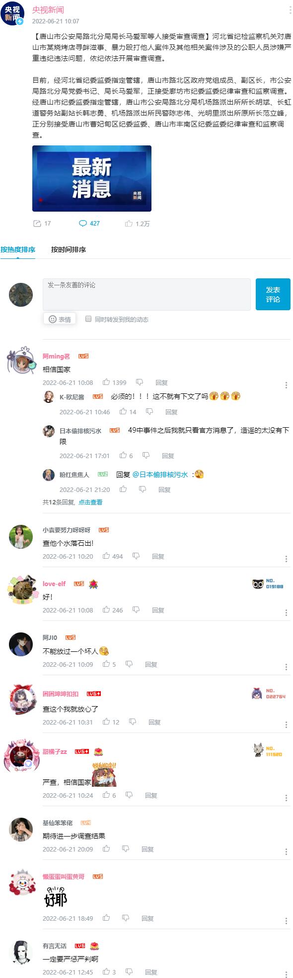 目前,经河北省纪委监委指定管辖,唐山市路北区政府党组成员、副区长,市公安局路北分局党委书记、局长马爱军,正接受廊坊市纪委监委纪律审查和监察调查。经唐山市纪委监委指定管辖,唐山市公安局路北分局机场路派出所所长胡斌、长虹道警务站副站长韩志勇、机场路派出所民警陈志伟、光明里派出所原所长范立峰,正分别接受唐山市曹妃甸区纪委监委、唐山市丰南区纪委监委纪律审查和监察调查。
