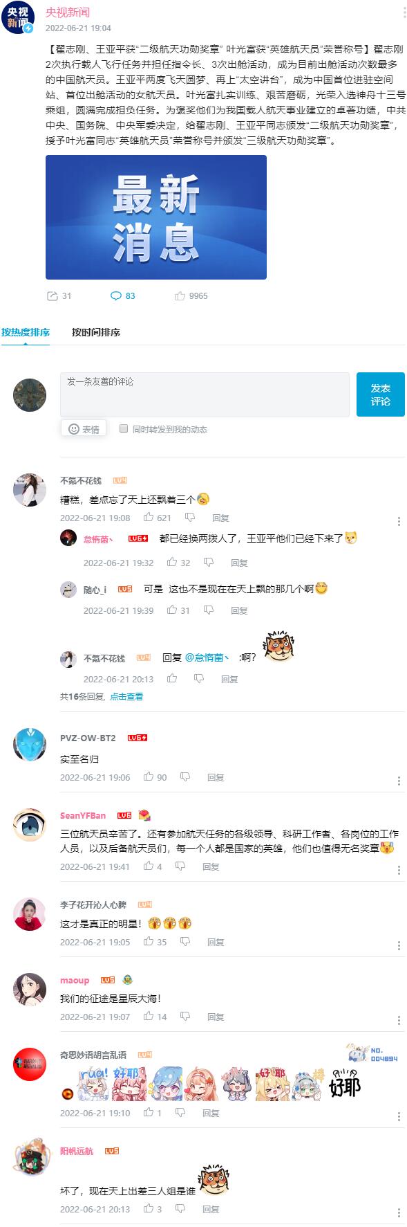 ★★★ 翟志刚、王亚平获“二级航天功勋奖章” 叶光富获“英雄航天员”荣誉称号