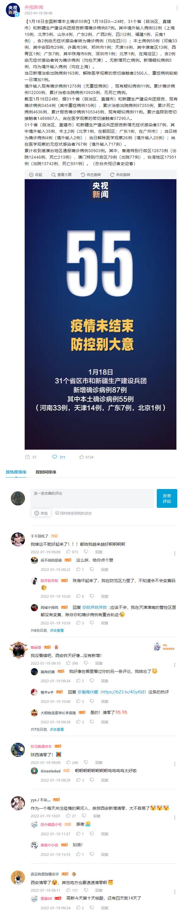 【1月18日全国新增本土确诊55例】