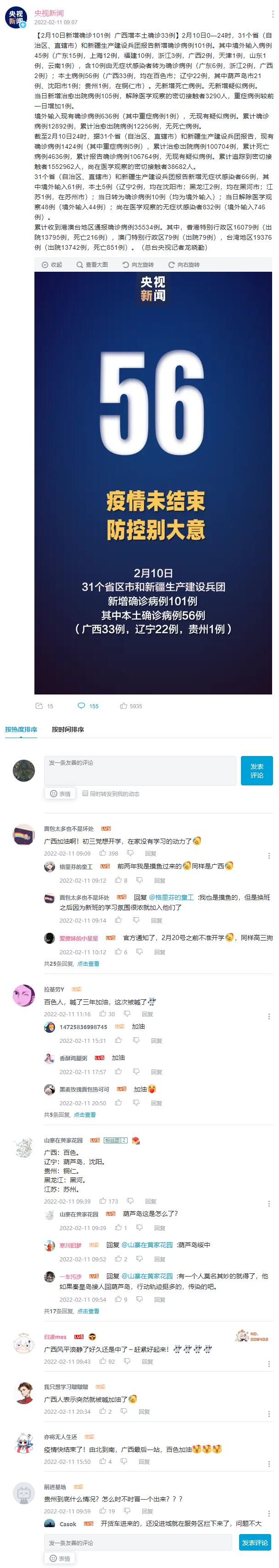 【2月10日新增确诊101例 广西增本土确诊33例】