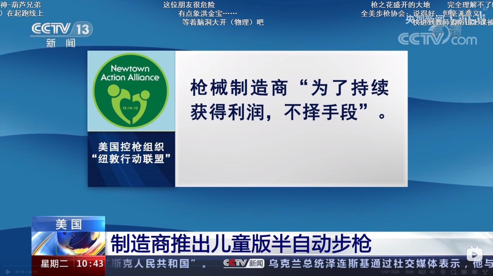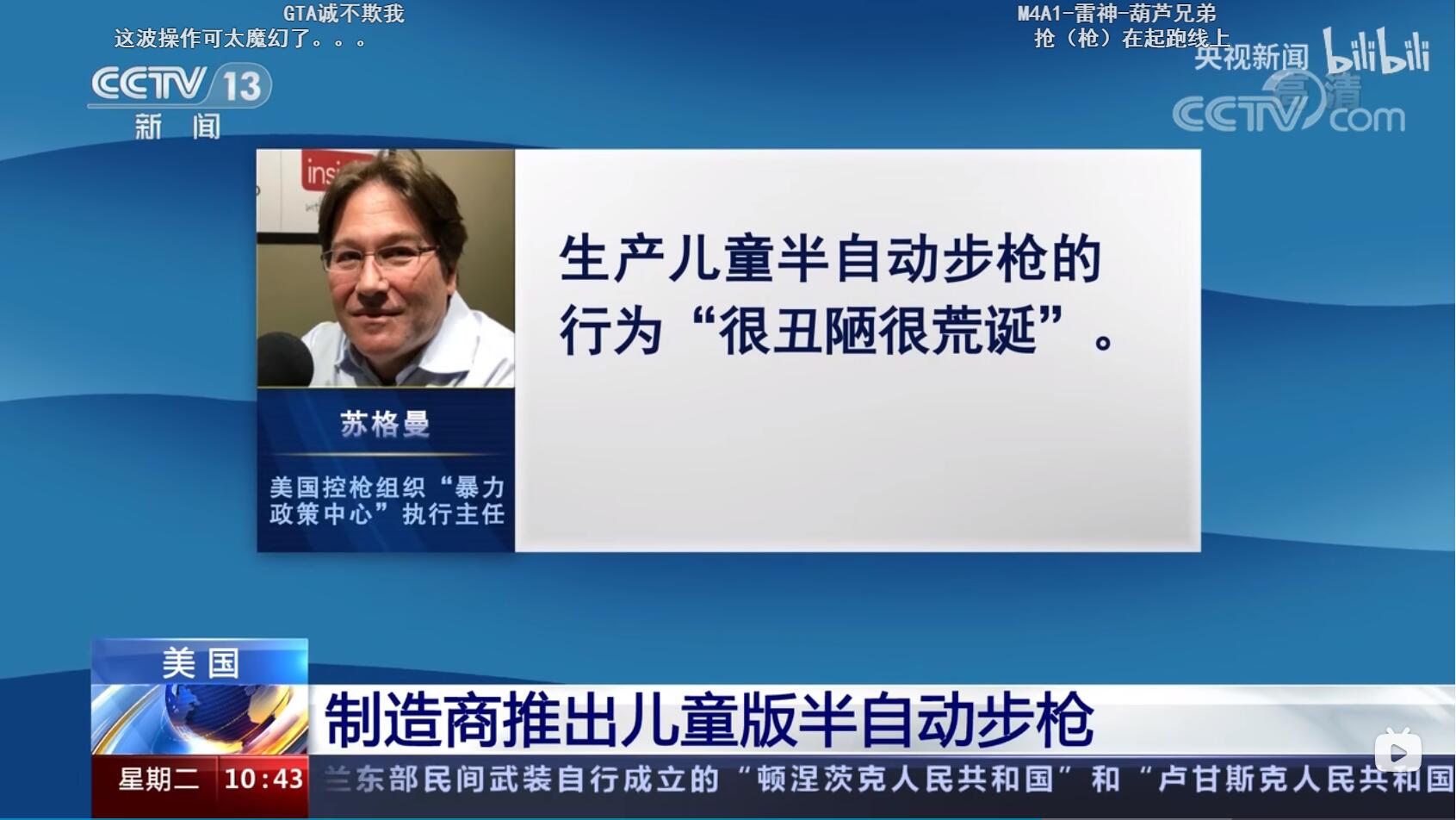 近日,美国枪械制造商推出专门面向儿童销售的半自动步枪“JR-15”,枪身印有卡通骷髅标志,其原型枪“AR-15”是美国军队用枪的民用版本。美国控枪组织“暴力政策中心”表示,生产儿童半自动步枪的行为“很丑陋很荒诞”;另一家控枪组织“纽敦行动联盟”则谴责枪械制造商“为了持续获得利润,不择手段”。