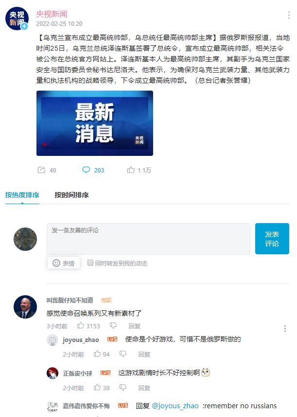 ★★★ 【乌克兰宣布成立最高统帅部,乌总统任最高统帅部主席】