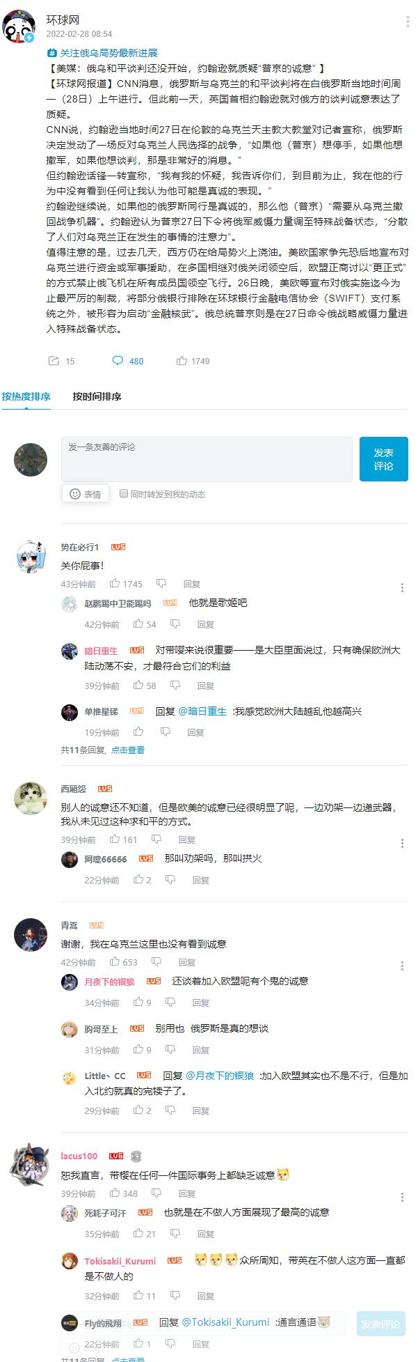 ★★★ 【美媒:俄乌和平谈判还没开始,约翰逊就质疑“普京的诚意” 】