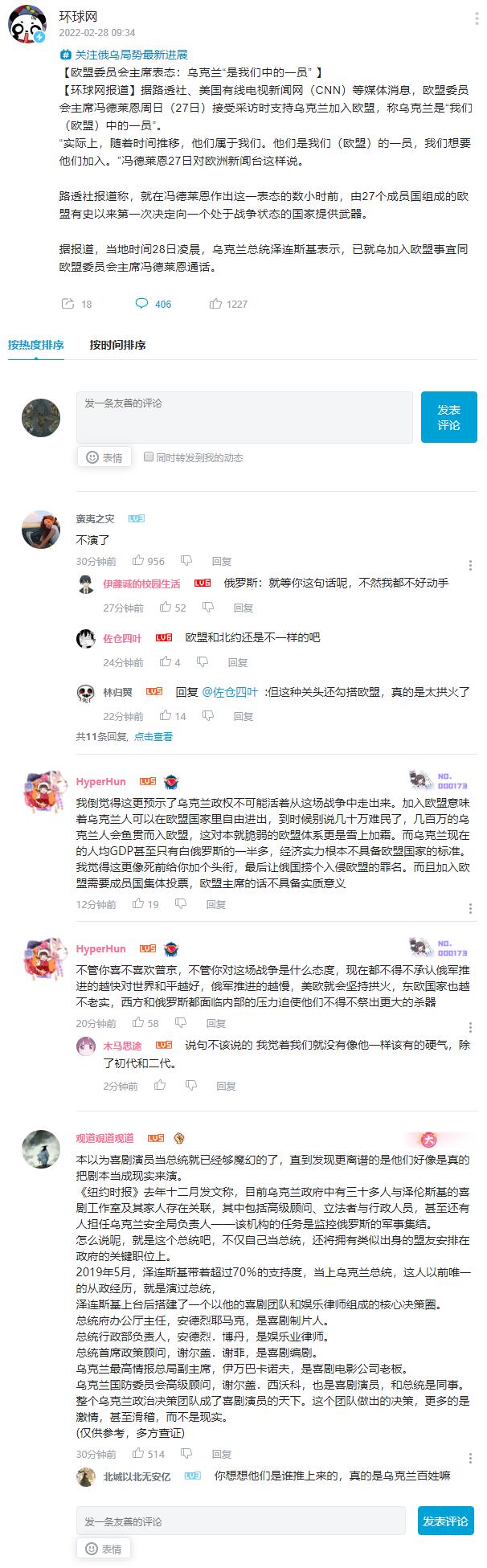 ★★★ 【欧盟委员会主席表态:乌克兰“是我们中的一员” 】
