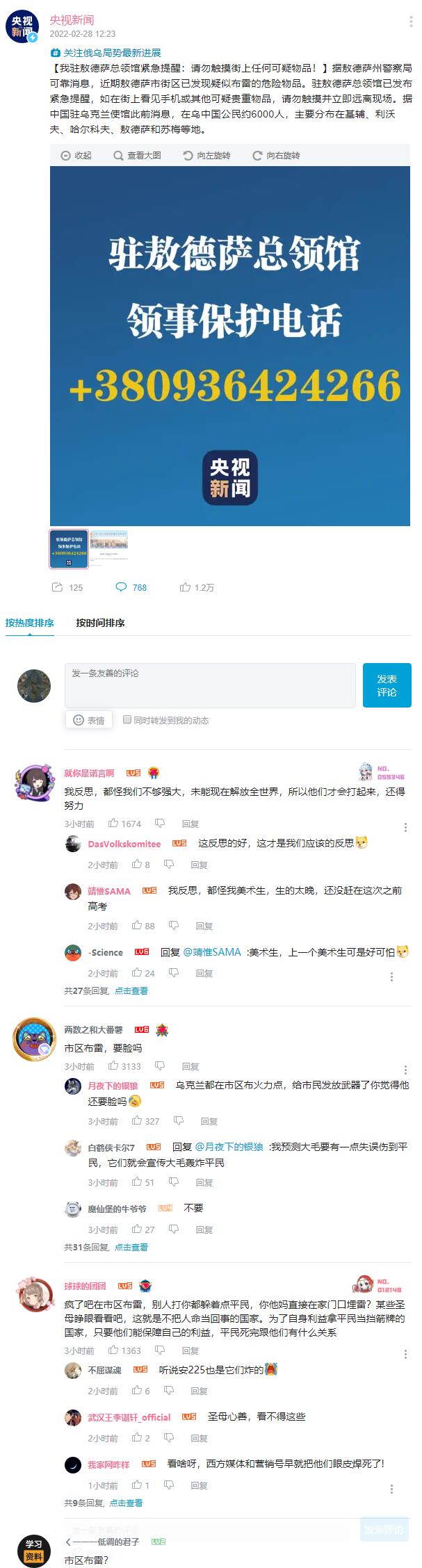 【我驻敖德萨总领馆紧急提醒:请勿触摸街上任何可疑物品!】据敖德萨州警察局可靠消息,近期敖德萨市街区已发现疑似布雷的危险物品。驻敖德萨总领馆已发布紧急提醒,如在街上看见手机或其他可疑贵重物品,请勿触摸并立即远离现场。据中国驻乌克兰使馆此前消息,在乌中国公民约6000人,主要分布在基辅、利沃夫、哈尔科夫、敖德萨和苏梅等地。